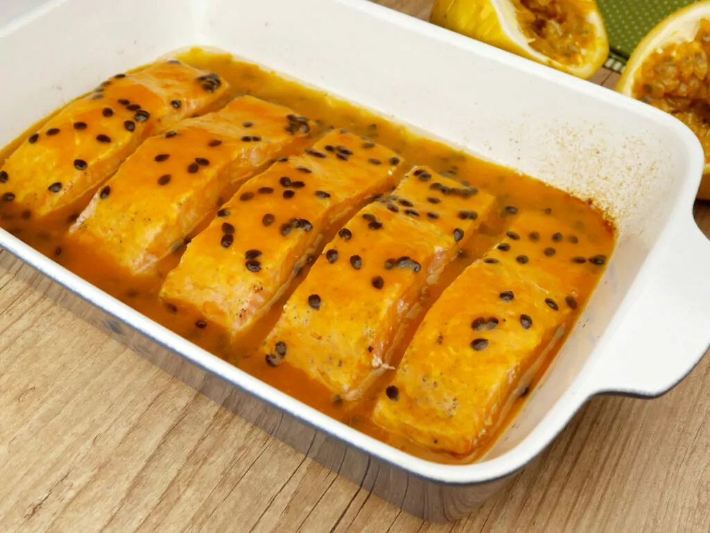 Essa é para aqueles que duvidam que o maracujá possa combinar com receitas salgadas. Essa delícia aqui vai deixar qualquer um com água na boca, pois juntamos a perfeição do salmão com esse molho de maracujá que é uma verdadeira obra de arte.