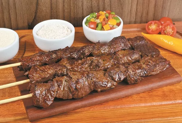 5. Espetinho de carne com molho barbecue