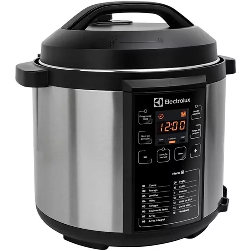 A panela de pressão é um item muito versátil na cozinha. Com ela, é possível preparar grãos, caldos, cremes, carnes, doces e muito mais. E a panela de pressão elétrica traz versatilidade, praticidade e segurança. A panela de pressão elétrica da Electrolux possui capacidade de 06 litros, ajuste de intensidade de pressão, display digital em led, trava de segurança e muito mais.
