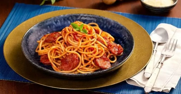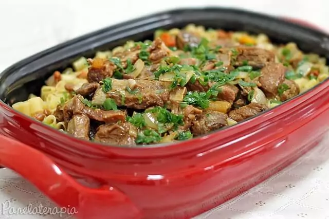 Macarrão na panela de pressão com carne moída e linguiça fresca
