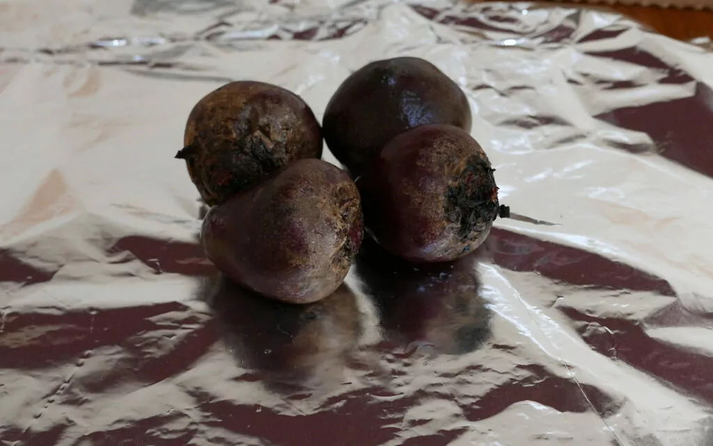 Lave bem as beterrabas e as coloque enroladas em alumínio, recomendo colocar até 4 beterrabas por trouxinha de alumínio. Coloque as beterrabas para assar em forno pré-aquecido a 180 graus por cerca de 1 hora, depois desligue o fogo e deixe descansando por algumas horas, isso deixará a beterraba bem assada e adocicada.